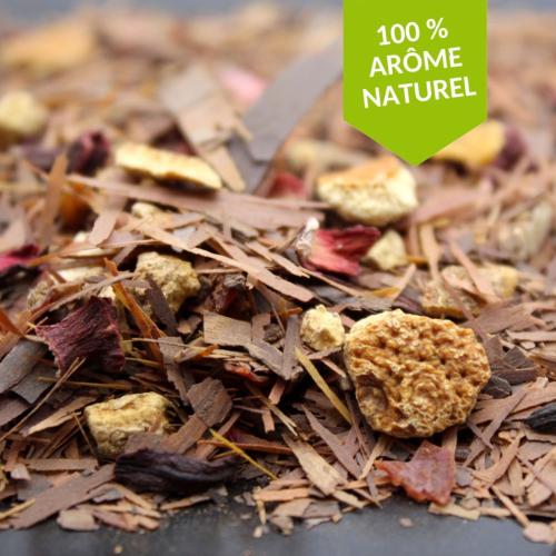 • Composition : 73% de lapacho, hibiscus, écorce d'orange (5%), gingembre, arôme naturel, orange confite (3%), cynorrhodon